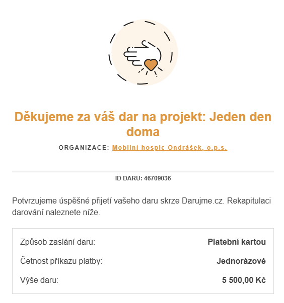 Zaokrouhlil jsem nahoru a nějaký peníz přihodil- dohromady 5500Kč, které jsem se letos rozhodl opět věnovat na podporu Mobilního hospice Ondrášek (www.mhondrasek.cz).